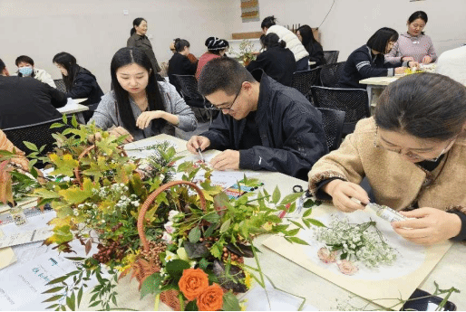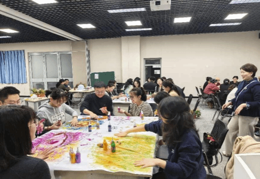 活动从轻松的破冰游戏开始,迅速拉近了彼此距离;随后通过关键词自我介绍和分组绘画疗愈,大家不仅在协同创作中锻炼了沟通与协作,更在色彩与线条间畅快表达自我。而本次活动的亮点则是“利用自然材料作画”环节。辅导员们以落叶与鲜花为笔,将大自然的美感与个人情感巧妙融合,在创作中感悟生命脉络,于拼贴间抒发内心世界。完成作品后,大家围坐分享创作灵感与心灵触动,现场氛围温馨而深入。参与活动的辅导员们纷纷表示,整个活动过程轻松愉悦,让人感到“特别放松”。从集体互动到艺术表达,尤其是与自然材料对话的过程,让他们“感受到了他人给予的能量”与大自然的疗愈力量,有效缓解了日常工作压力,提升了情绪管理能力。