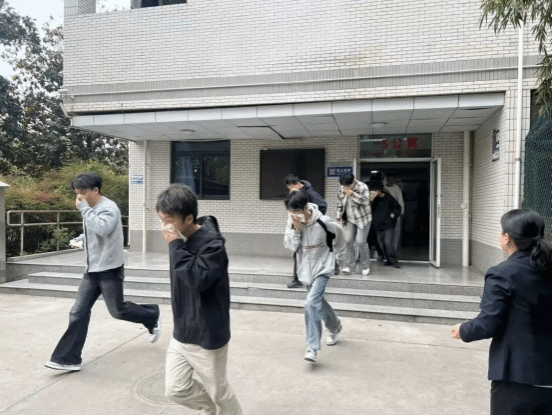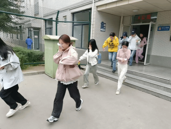 上午9时,随着警报声响起,演练正式启动。宿舍内学生迅速响应,严格按照演练规范,做好“捂住口鼻、弯腰低姿、快速撤离”的防护动作,在现场工作人员的有序引导下,沿预定疏散路线快速集结至指定安全区域。整个疏散过程紧张高效、秩序井然,未发生拥挤、踩踏、慌乱等情况,既充分展现了学生们良好的安全素养,有效提升了大家的应急避险和自救互救能力,也检验了公寓应急预案的可操作性,以及工作人员在应急疏散组织工作中的科学性与规范性。